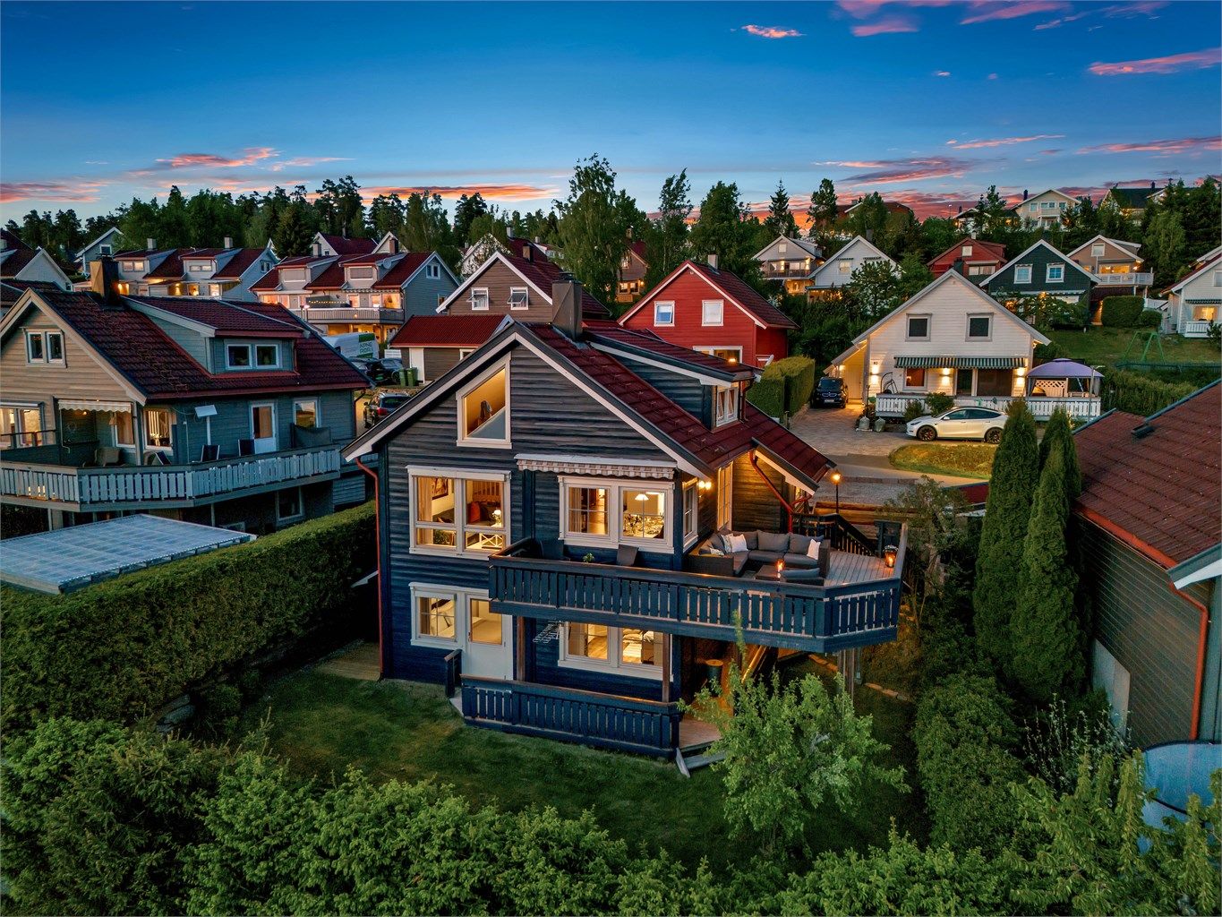 Drømmer du om å våkne til en mektig og vidstrakt utsikt? Denne velholdte eneboligen over tre plan byr på en fantastisk utsikt som tar pusten fra deg – fra soloppgang til gyllen solnedgang i vest. Vestvendt beliggenhet og flere solrike uteplasser gir perfekte rammer for både hverdag og fest.