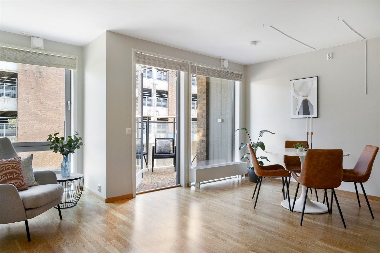 Leiligheten har lyst og tidløst kjøkken med åpen løsning ut mot stue