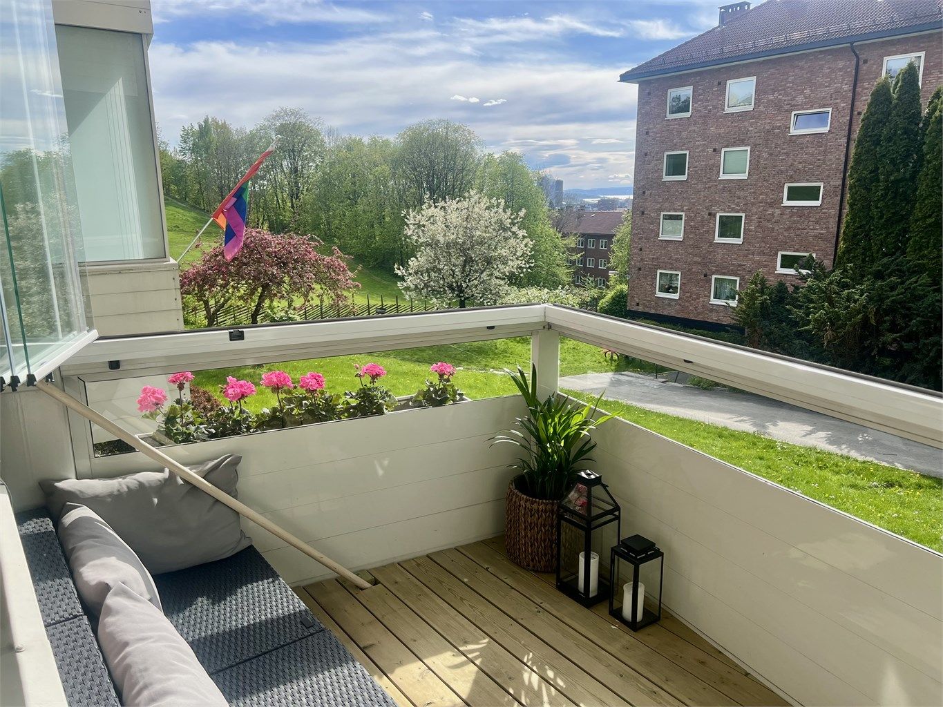 Planløsningen er effektiv, med store vindusflater og god romfølelse i alle rom. Stuen har peis og utgang til solrik balkong, kjøkkenet er stilrent med god skapplass, og to soverom av god størrelse. Tre boder gir praktisk lagring. Skjermet og tilbaketrukket, men likevel få meter til trikk, buss, T-bane, kaféer, bakerier, butikker og treningssentre. En urban perle med park rett utenfor døren!