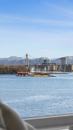 Lekker topp/endeleilighet i maritime omgivelser nær sjø og by. Panorama sjøutsikt. Fast parkering i lukket anlegg.