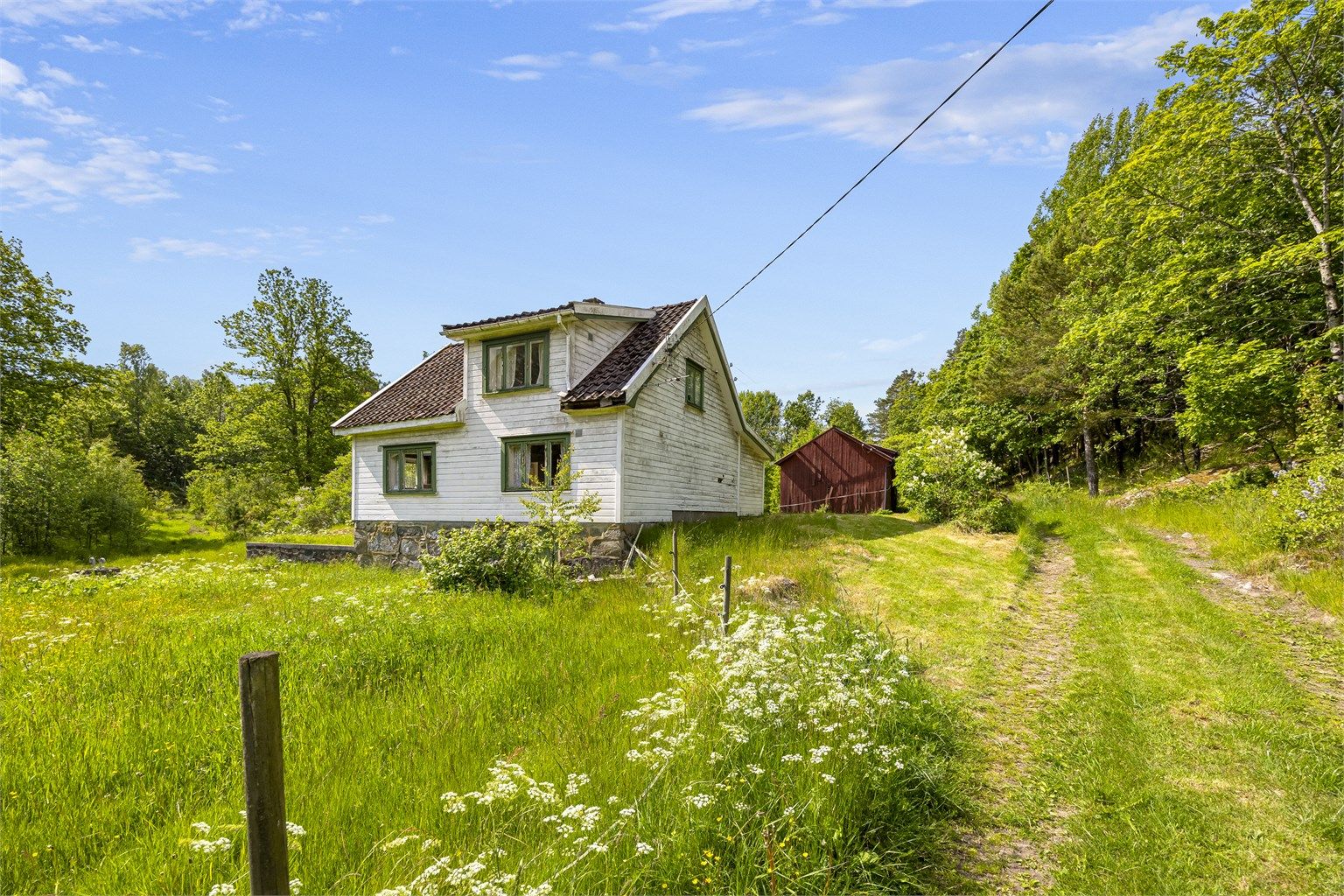 Flott tomt med renoveringsobjekt i landlige og vakre omgivelser og få meter til sjøen. Eiendommen består av våningshus og uthus/låve, begge deler har en veldig enkel tilstand i dag og utbedringer/totalrenovering eller riving må påregnes. Huset er fra 1800-tallet og låven er av ukjent opprinnelse. Eiendommen bør besiktes med fagfolk for en bedre oversikt før bud inngis. Det er en romslig tomt med mange muligheter og kort vei til matbutikk, bussholdeplass, barnehage og skole blant annet. Det er sol på eiendommen fra tidlig morgen til sent på kveld. Til Arendal sentrum tar det ca. 14 minutter fra eiendommen.