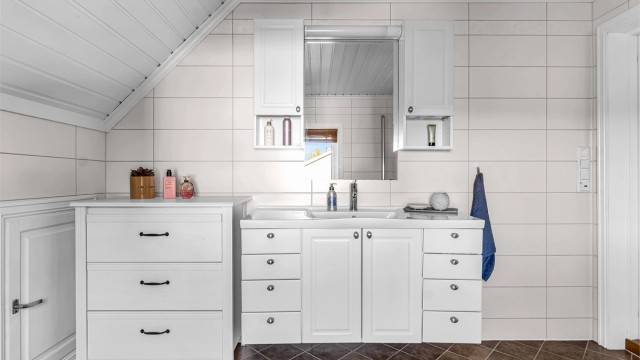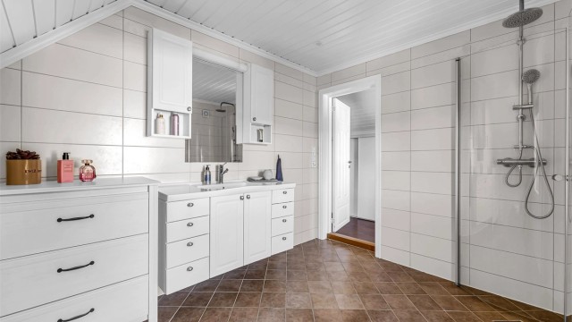 Tiltak: Våtrommet må totalrenoveres. Alle forhold med tettesjikt, våtsone, sluk m.m. må dokumenteres. For mer informasjon se side 12 i tilstandsrapporten.