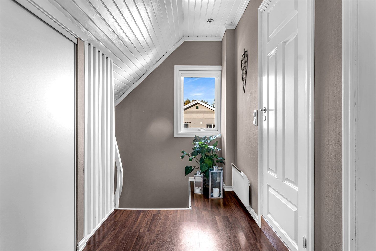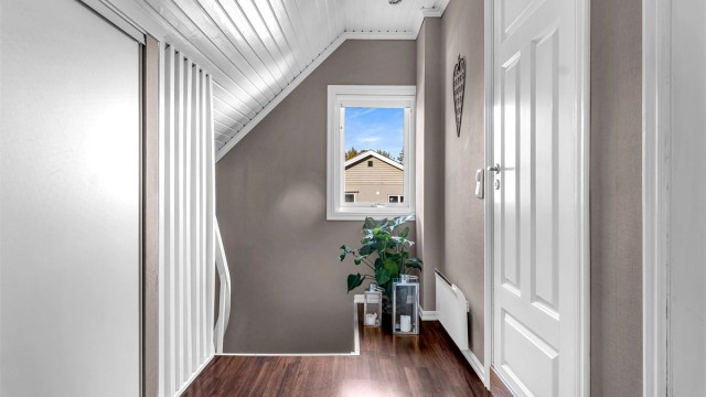 2. etasje 42 kvm: Gang, to soverom og bad.