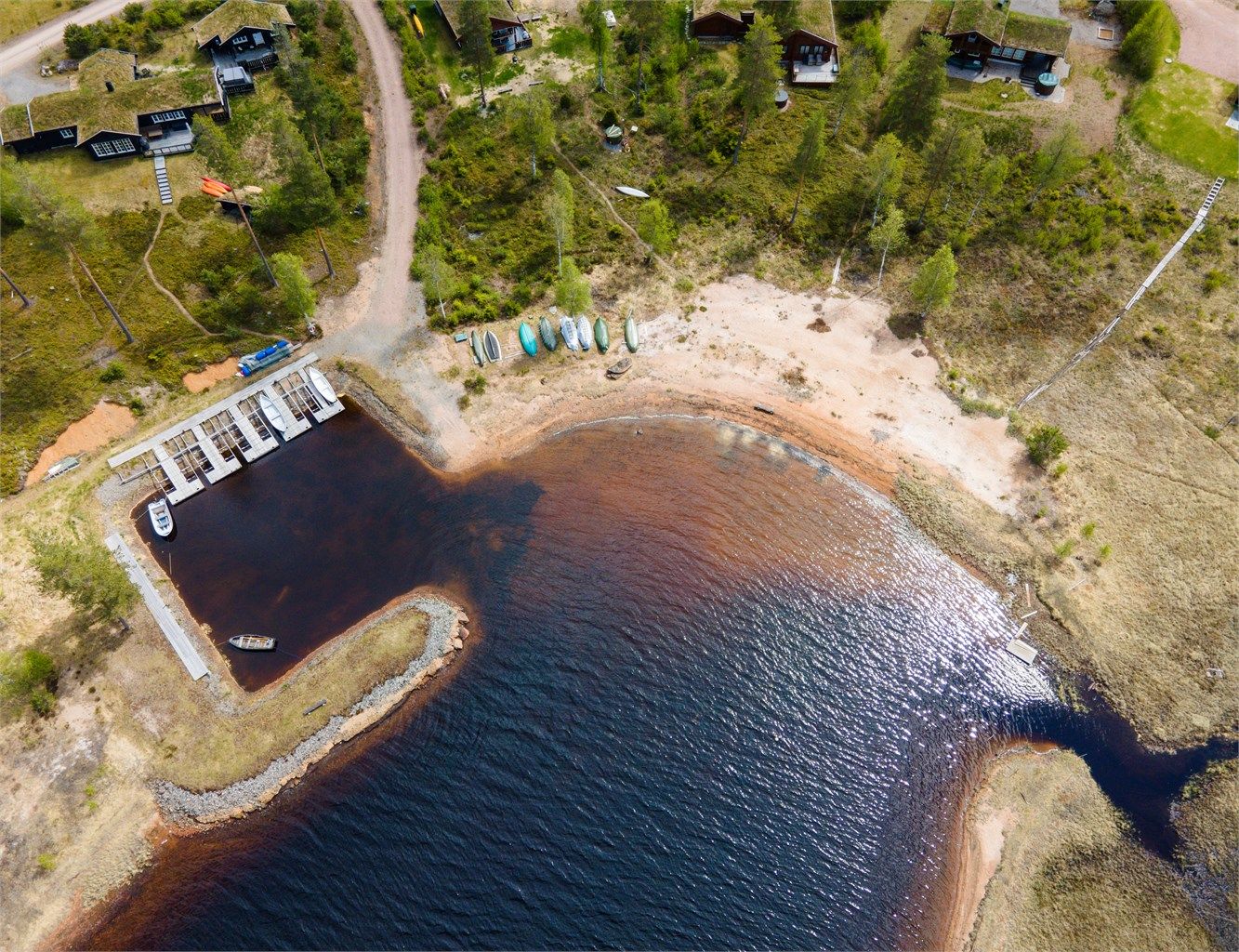 Det er lett terreng å gå på tur i og mange flotte muligheter for variert friluftsliv på Finnskogen. Du kan gå rett ut døren og følge deler av den 24 mil lange turstien Finnskogleden, som ligger kun et steinkast unna tomten. Det er også kilometer på kilometer med sykkelveier. Hvis du har kajakk eller kano, kan du nyte deg i sjøen, eller hvis du liker skiturer, er det godt preparerte skiløyper rett utenfor. Du kan til og med gå til restauranten i Mattila i Sverige hyttefeltet. Jakt- og fiskemulighetene på Finnskogen er også utmerkede, og her vil du virkelig finne et fristed med sjel.
