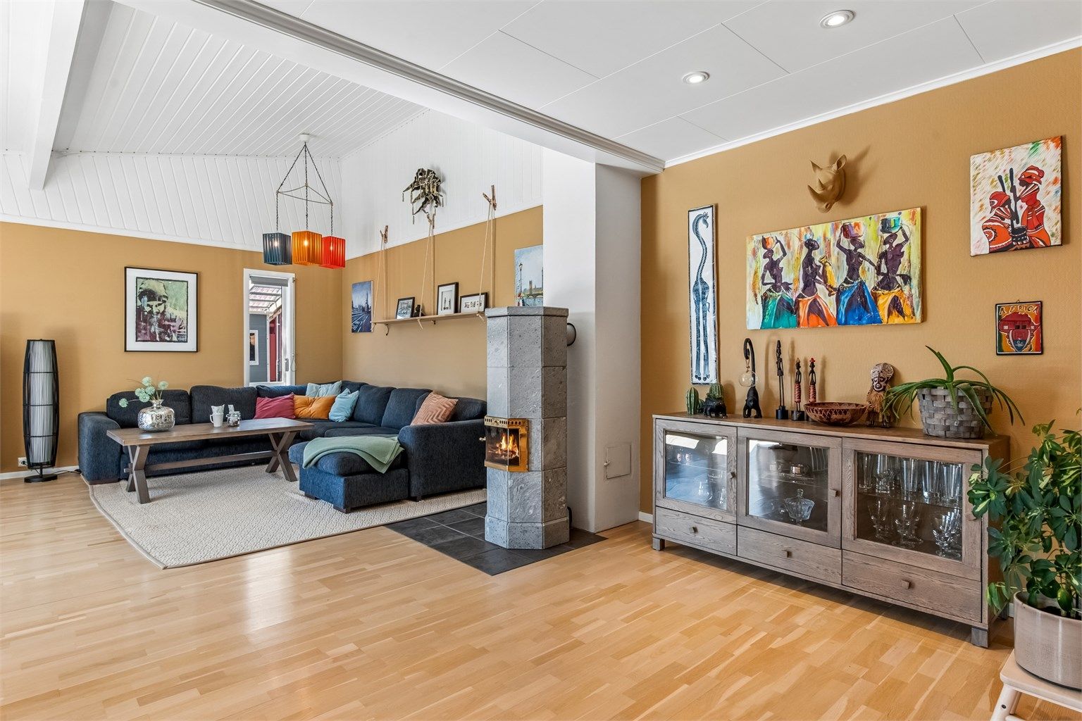 Flott atriumhus med god beliggenhet, skjermet hjørnetomt, alle rom på ett plan og fine solforhold. Carport.