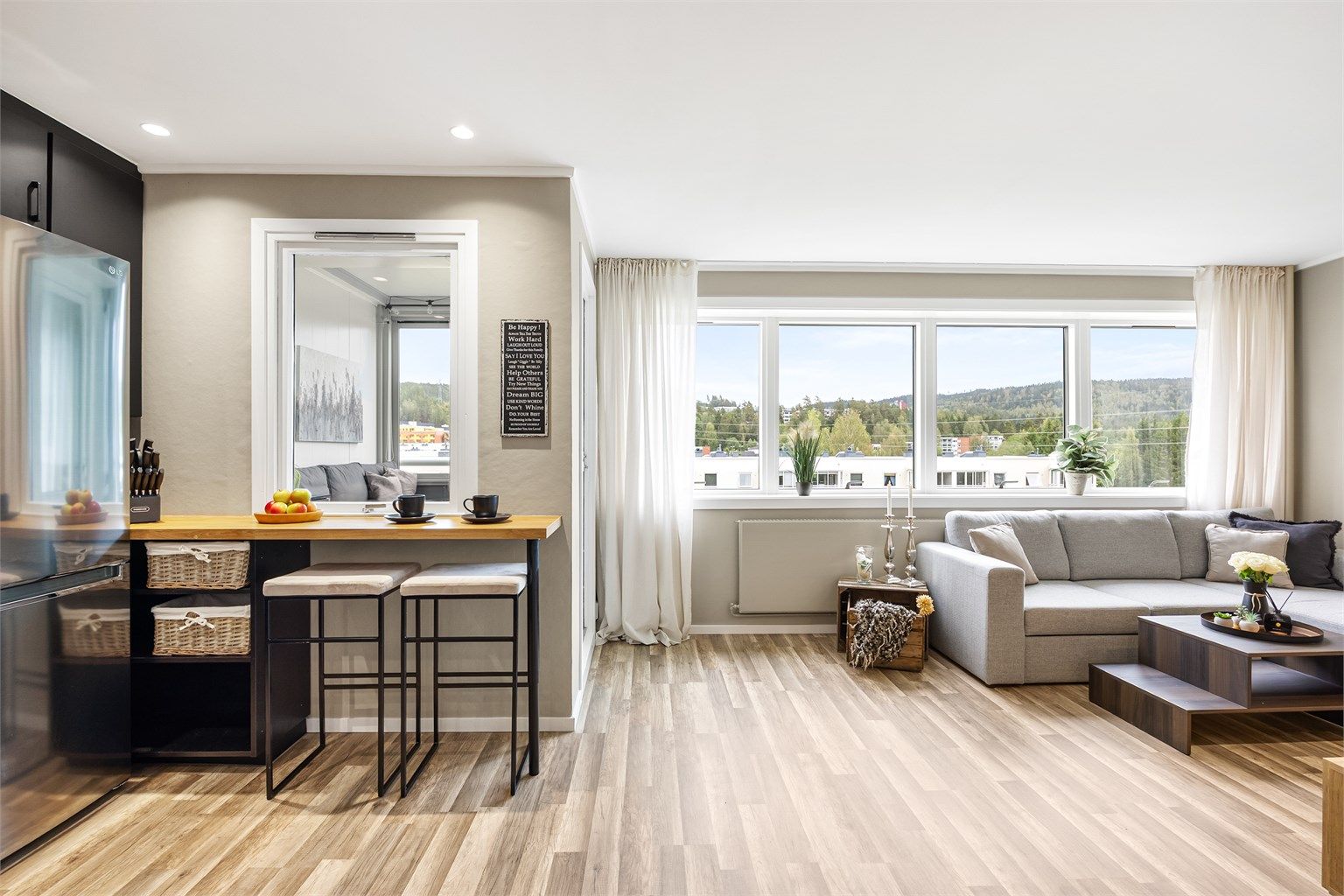 Velkommen til en lys og moderne 1-roms med praktisk sovealkove – et ideelt førstegangskjøp! Leiligheten har en arealeffektiv planløsning, med åpen stue- og kjøkkenløsning, og et stilrent kjøkken fra 2022 med integrerte hvitevarer. Den innglassede balkongen kan brukes året rundt og gir ekstra boltreplass. Sovealkoven har god plass til seng og oppbevaring.