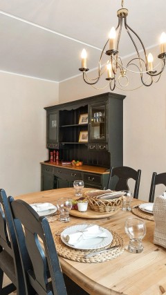 Boligen har to romslige soverom med god plass til både seng og garderobeløsninger. På hovedsoverommet er det en praktisk bod plassert bak skyvedører, som gir ekstra og smart oppbevaringsplass. Det ene soverommet benyttes i dag som spisestue, noe som gir fleksible bruksmuligheter etter behov.