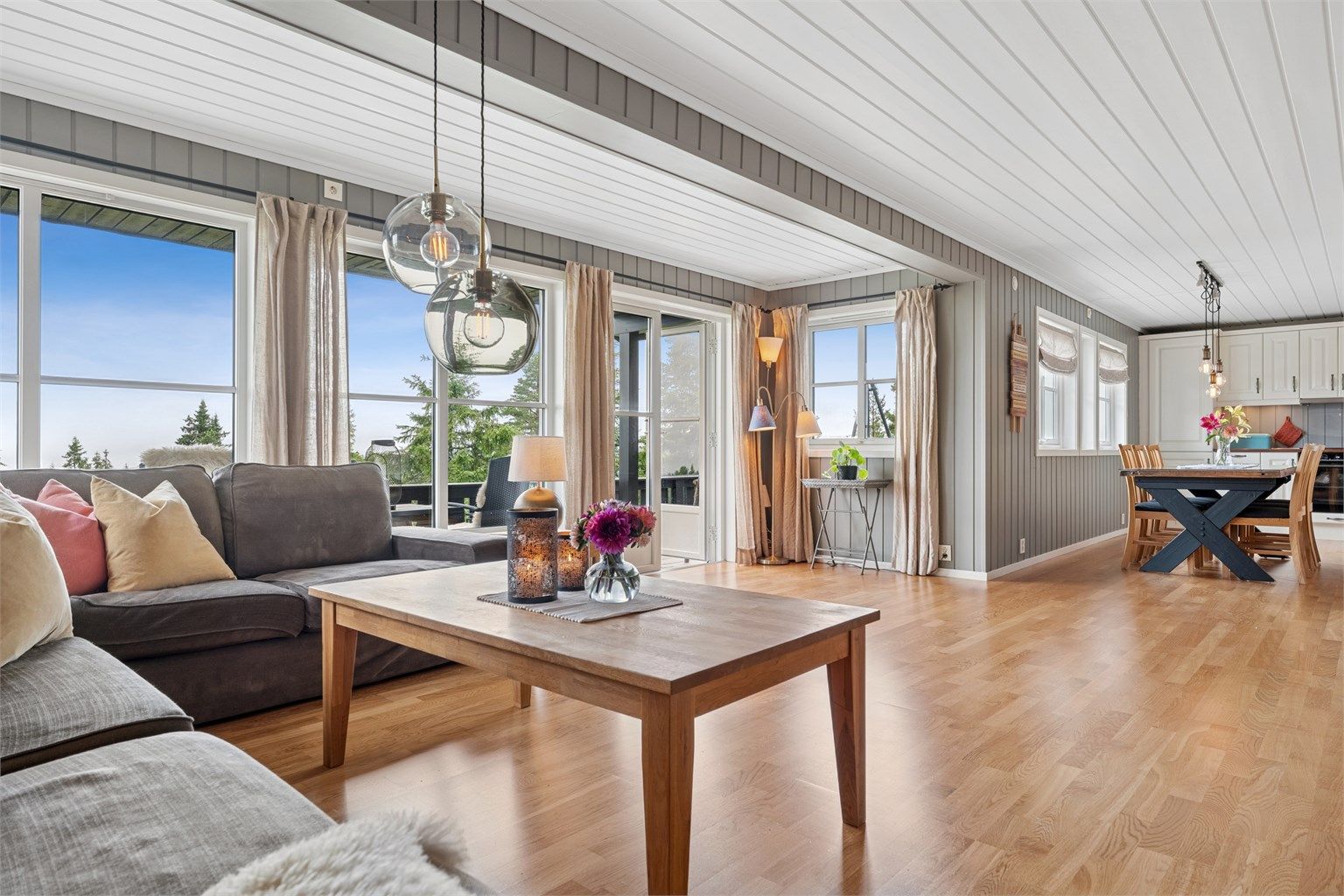 Fire soverom, to flotte bad, åpen kjøkkenløsning fra Sigdal og stor stue med peisovn gir plass til både fellesskap og privatliv.