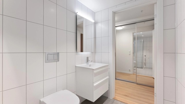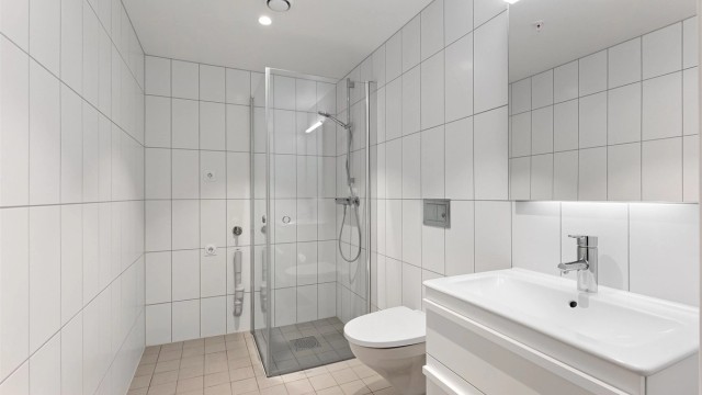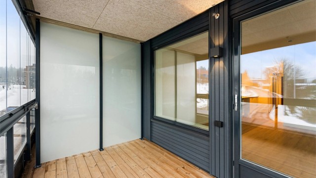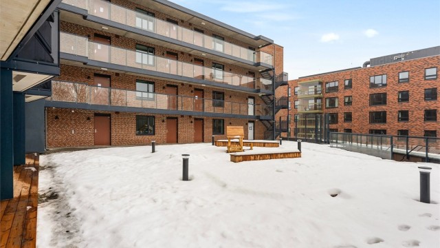 Helt ny og svært arealeffektiv 2-roms hjørneleilighet med innglasset balkong + balkong og felles terrasse