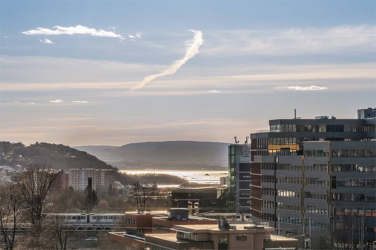 Lys, moderne og usjenert 2-roms selveier fra 2023 med høy standard! Høyt i 6. etasje med arealeffektiv planløsning, store vinduer, stilrene overflater og en luftig balkong med utsikt.