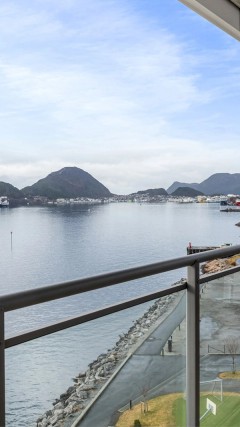 Byens beste beliggenhet som er sentrumsnært, fantastisk utsikt til Byen, Cruisebåt anløpene Slinningsbålet, Sunnmørsalpene. Et fantastisk turområde både ift. løping, hiking og sykling og leilighetskomplekset har egen badeplass.