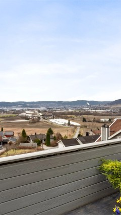 Stor og innholdsrik terrasseleilighet på 141 m² i toppetasjen. 2 bad. Suveren vidstrakt utsikt fra høyden. 2 p-plasser.