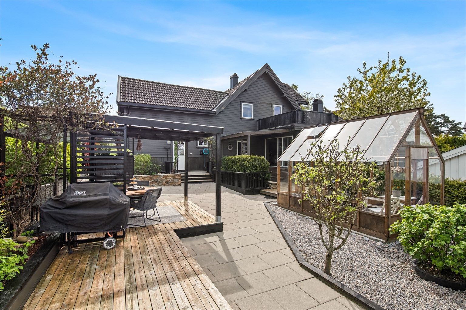Dersom du vil ha en sentralt beliggende bolig med fantastiske utearealer, anbefales denne boligen besiktiget. Her kan du nyte utearealer i "parkmessig stand" som trygt kan kalles usjenerte og idylliske. Her er det plass til hele familien på grilling og sommerhygge, og barna kan leke trygt på lekeplassen like ved utgangsdøren.