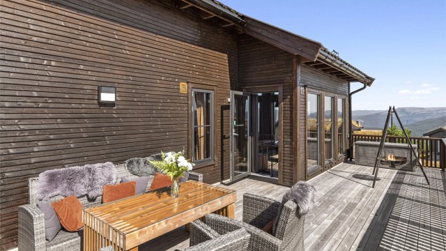 Frittliggende, moderne og innholdsrik hytte på toppen av Vrådal Panorama – ca. 700 moh.