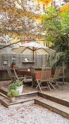 - Bakgården er hyggelig og innbyr til grilling på lyse sommerkvelder