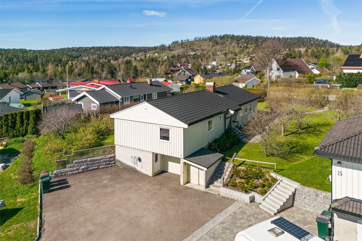 Parkering i integrert garasje og asfaltert gårdsplass
