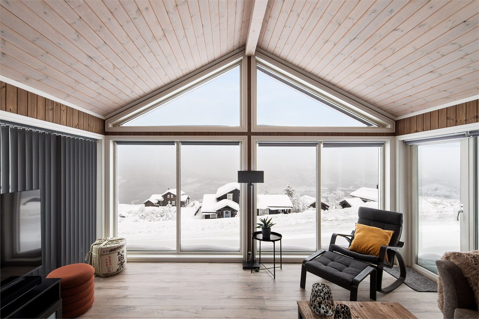 * Meget innholdsrik og innbydende hytte med bla. 4 soverom, 2 flislagte bad hvorav ett med badstue, separat vaskerom, stor stue med store vindusflater og nydelig utsikt samt kjøkken/allrom med god plass til spisestuen