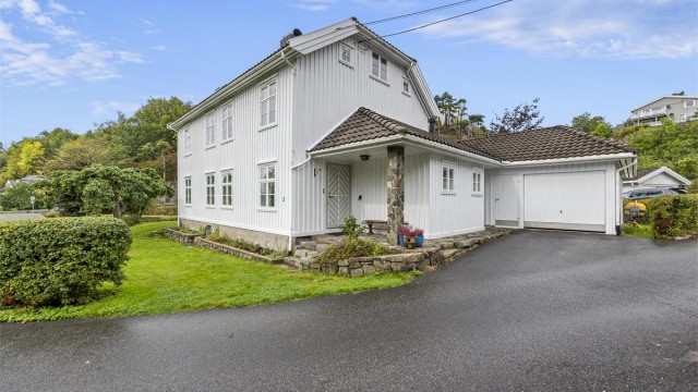 Sentralt beliggende klassisk villa med 2 boenheter, garasje med verksted/bod, stor tomt og pen hage. Attraktivt og veletablert boligområde med gangavstand til sentrum. Her får man en lettstelt og flott enebolig med utleieleilighet. Hoveddelen er lyst og pent innredet med flere stuer, pent kjøkken, vaskerom, bad og 4 soverom. Leiligheten ligger i 2. etasje og har soverom, 2 stuer, kjøkken og bad.