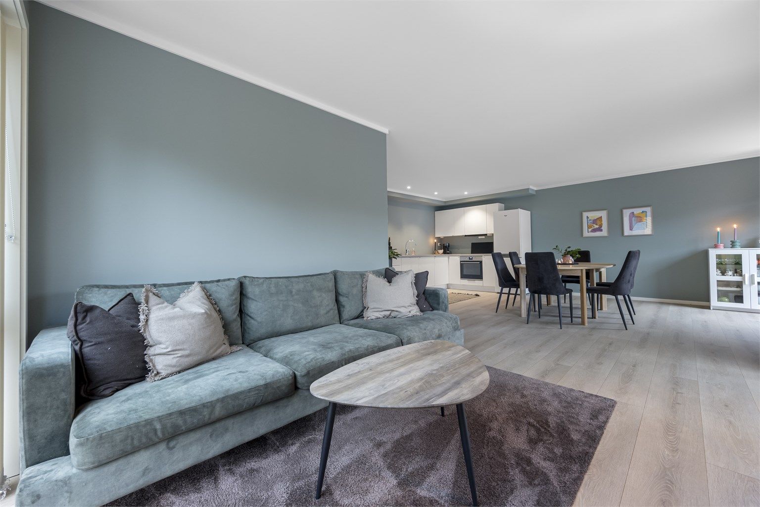 Elegant og moderne leilighet fra 2020 med tidløse farger, gjennomtenkte løsninger og alt samlet på ett plan. Her bor du i et stille og attraktivt område på Brunåsen med kort vei til sjø, natur og sentrum. Boligen består av entré, to soverom, bad, bod/teknisk rom og en åpen stue- og kjøkkenløsning med utgang til en solrik veranda på hele 60 m². Leiligheten nås via en trapp ned som gir en mer privat og skjermet beliggenhet, samtidig som du kommer ned til et uteområde med vakker utsikt over Tjennaparken og sentrum. Det følger med innendørs sportsbod, carport og gjesteparkeringsmuligheter.