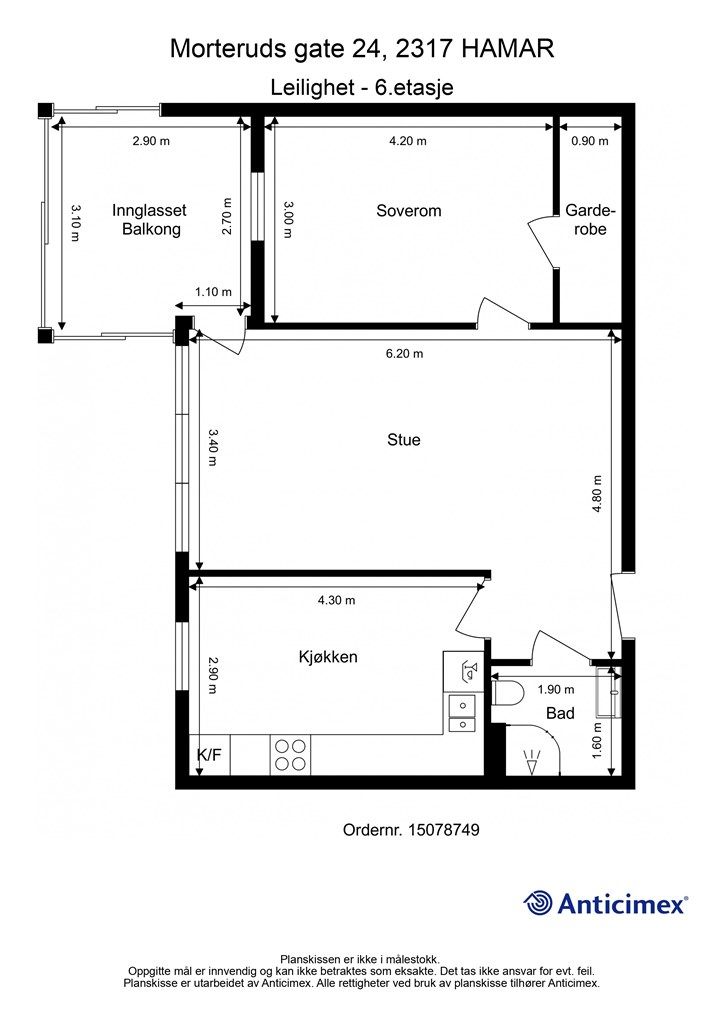Vedlagte plantegninger er ikke målbare. De oppgitte arealer er hentet fra rapport med befaringsdato 27.02.2026 utført av Anticimex AS v/Alf Harald Guriby. Arealene er beregnet og rom er definert etter dagens faktiske bruk, uavhengig av hva som er godkjent av bygningsmyndighetene.