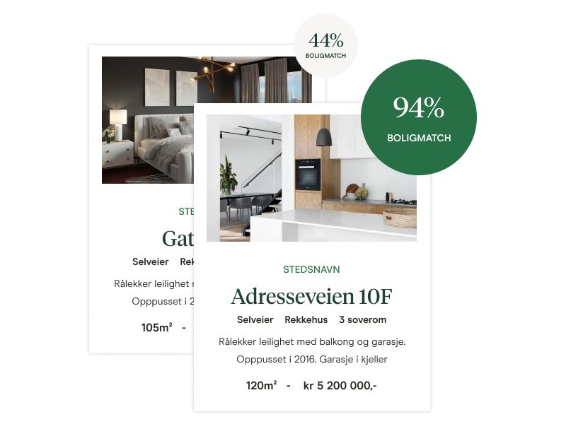 Bare fortell oss hva du er ute etter, så sender vi deg melding når vi finner boliger som matcher. Helt enkelt.