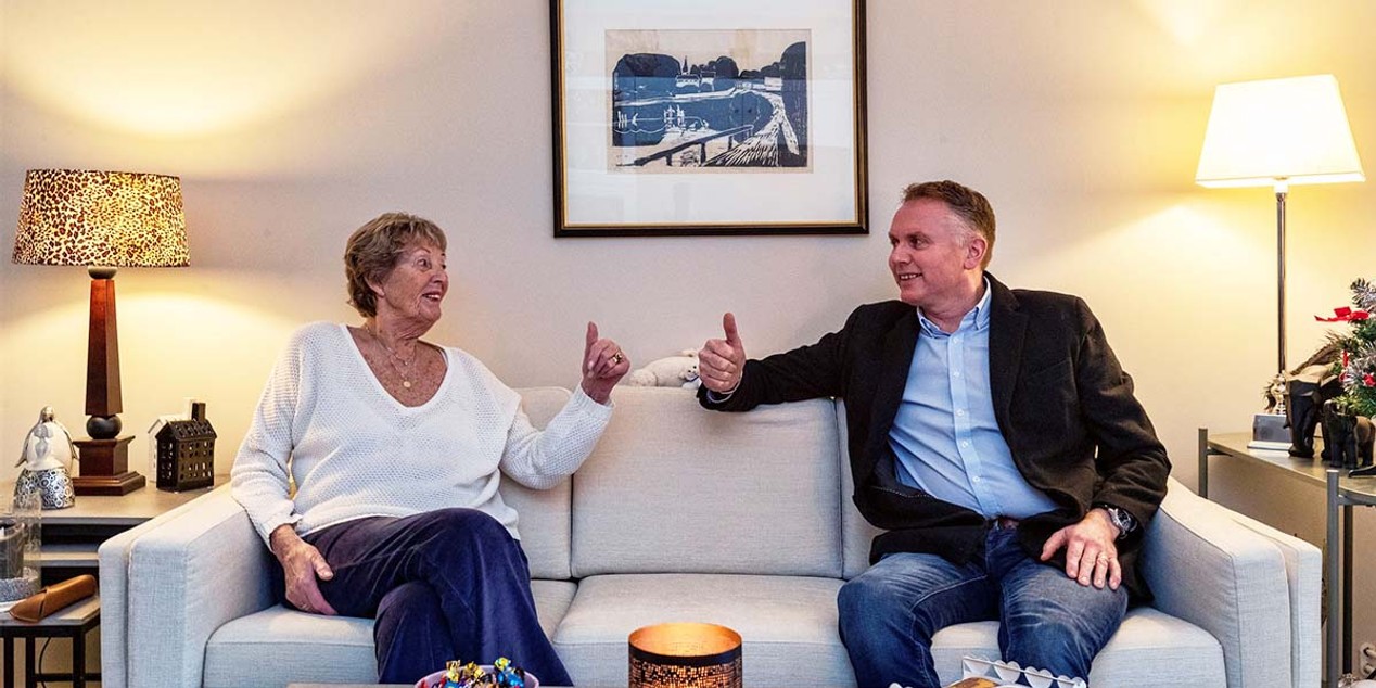 - Jeg er ikke lenger like mobil som da jeg flyttet inn i leiligheten i 2. etasje. Nå har jeg flyttet 150 meter unna, og ned på bakkeplan. Og du verden for en trygg, fin og enkel boligreise jeg fikk med all denne hjelpen fra Krogsveen, sier Laila Olsen entusiastisk.