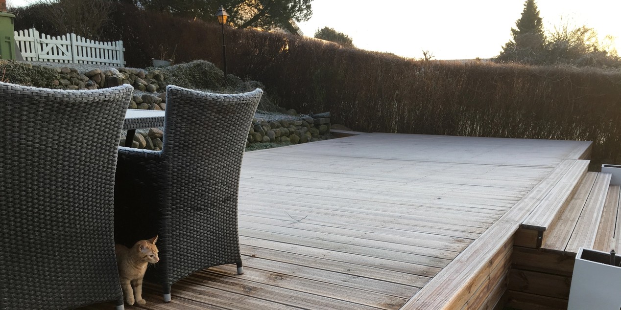Har du plass nok, kan du gjerne bygge flere plattinger på tomta – i tillegg til uteplassen utenfor stuedøra. Du kan ha stor glede av en liten uteplass der morgensola først titter fram, eller et utegulv der de siste solstrålene varmer. På en ujevn tomt kan bjelkene spenne over søkk i terrenget og gjøre uterommet mer tilgjengelig og praktisk.