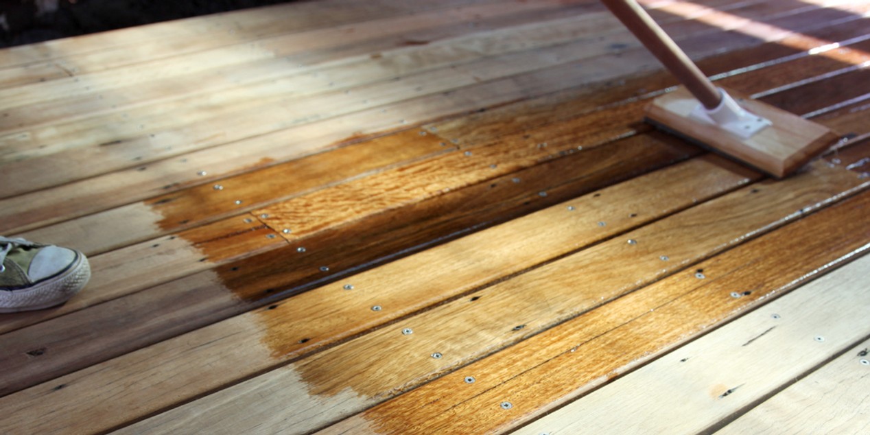 - Påfør rikelig mengde beis eller olje i bordenes fulle lengde. Ta to-tre bord om gangen.