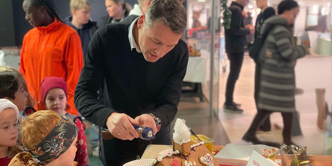 Barna er med og baker kreative pepperkakehus som auksjoneres bort.