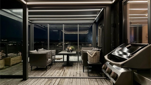 - Pergolux, 2 stk pergolaer med lys og skjerming (kr. 201.707,-). Pergoalene kan justeres via fjernkontroll.