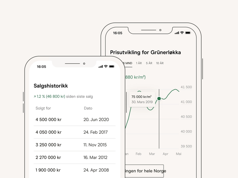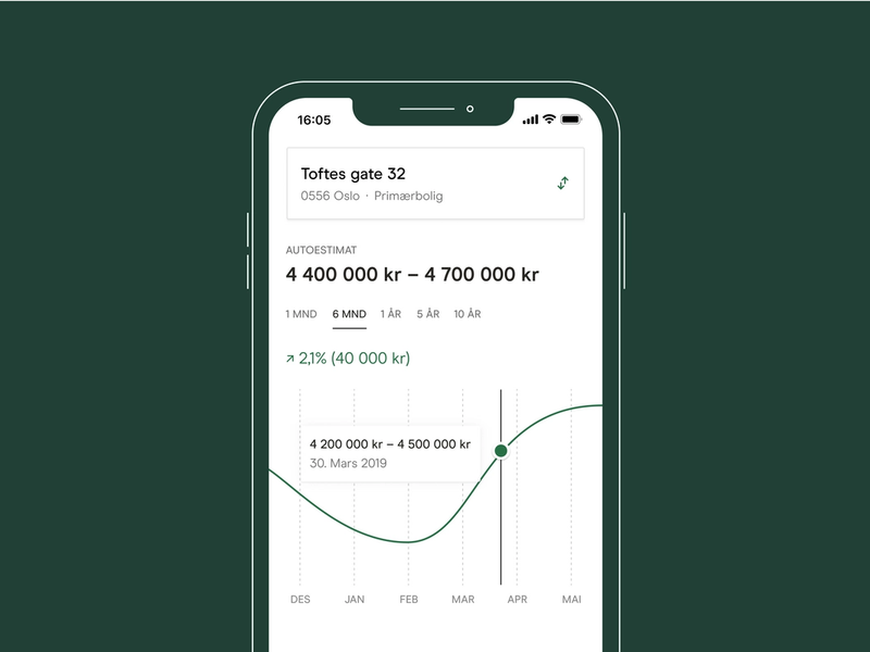 Hvordan utvikler boligverdien seg? Med egen profil kan du følge prisutviklingen på boligen din over tid.